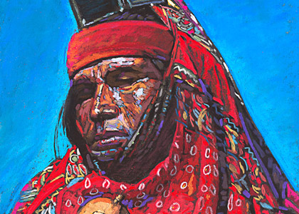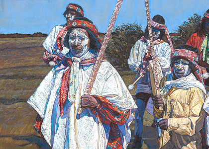 Baker lives with the people he paints, experiencing every aspect of their culture, of which some are about to become extinct. His travels have also included much of Asia, adding to the entourage of cultures he has experienced. His subjects include the Thrahumara Indians of the Sierra Madre Mountains of Mexico, the Guatemalan Maya Quicha Indians, the hills tribes of East Asia, and many primitive Indian tribes in the Amazon of South America.