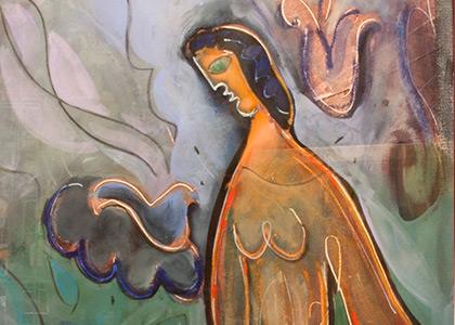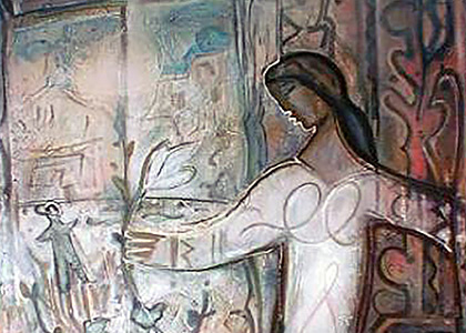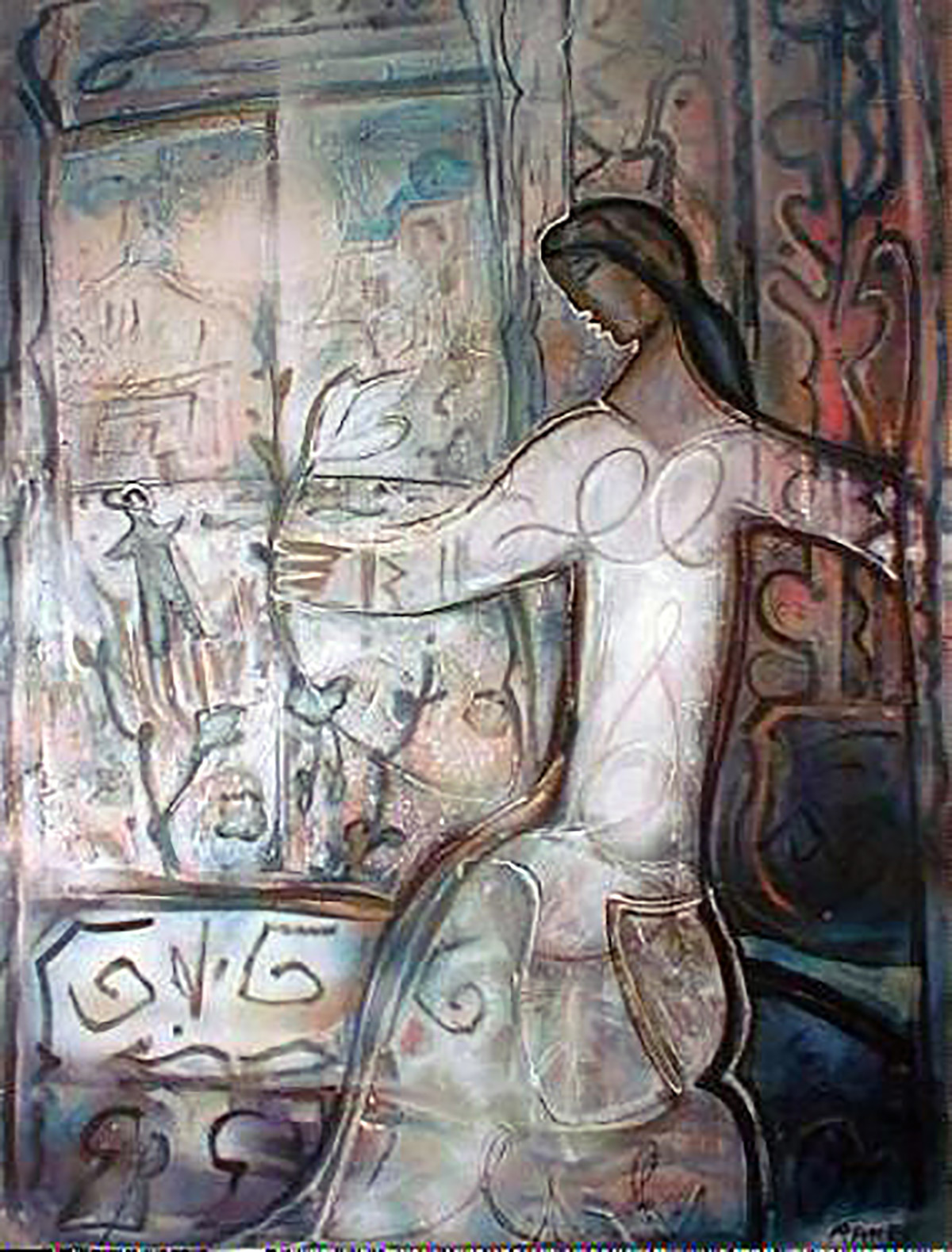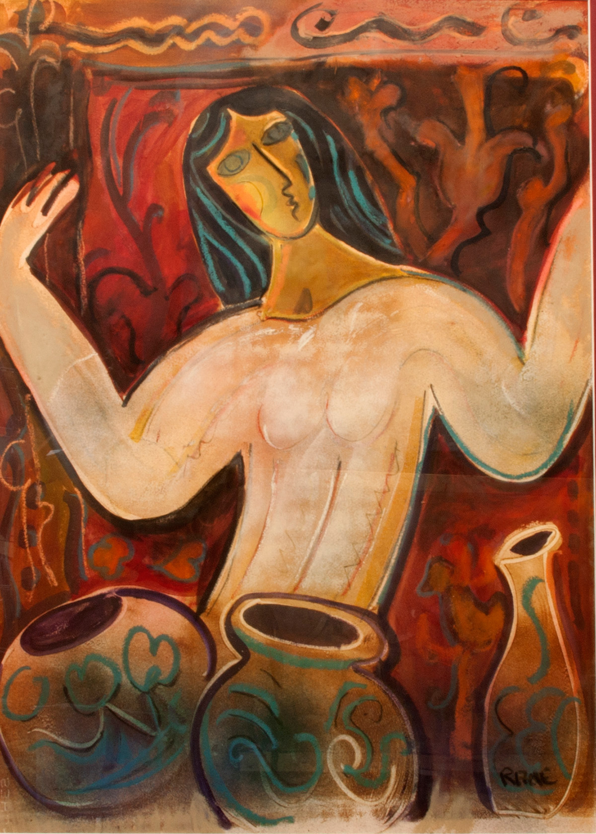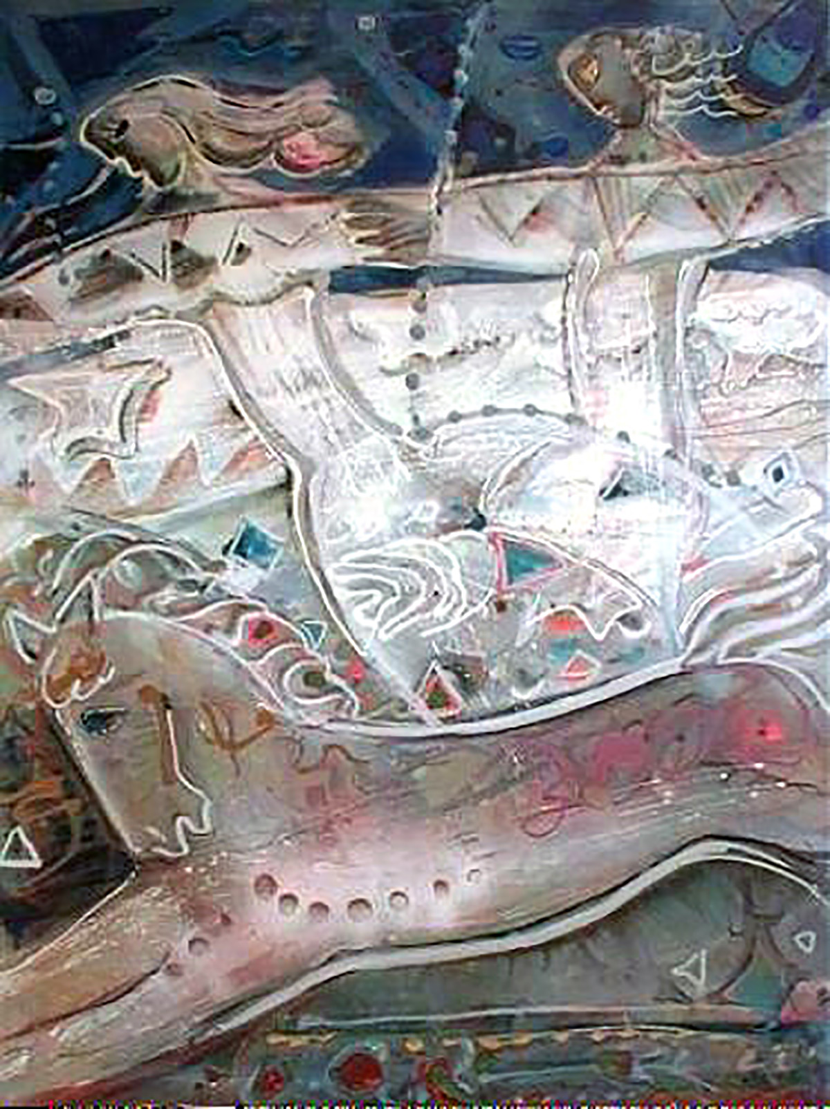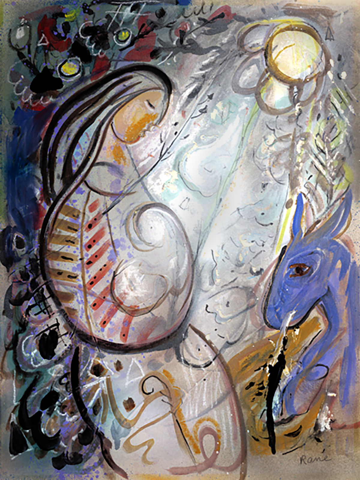 Bill Rane is known for his luminous and colorful oil paintings, married the classical with the contemporary. His timeless textured canvases are full of myths and glyphs and codices. His unique style encompasses goddesses and geese, pelicans and pomegranates, mythical animals and sea creatures. His range is broad - from the intuit of ancient cave paintings to the embrace of elaborate sea scrolls. The Hellenic female form appears in much of his work