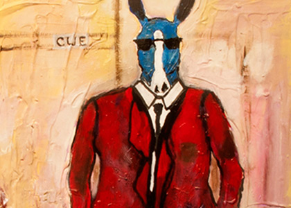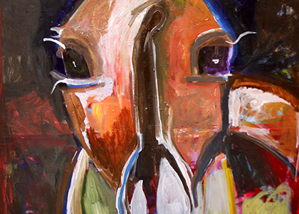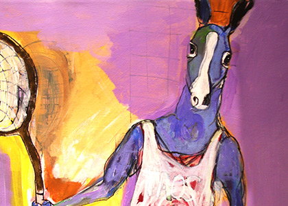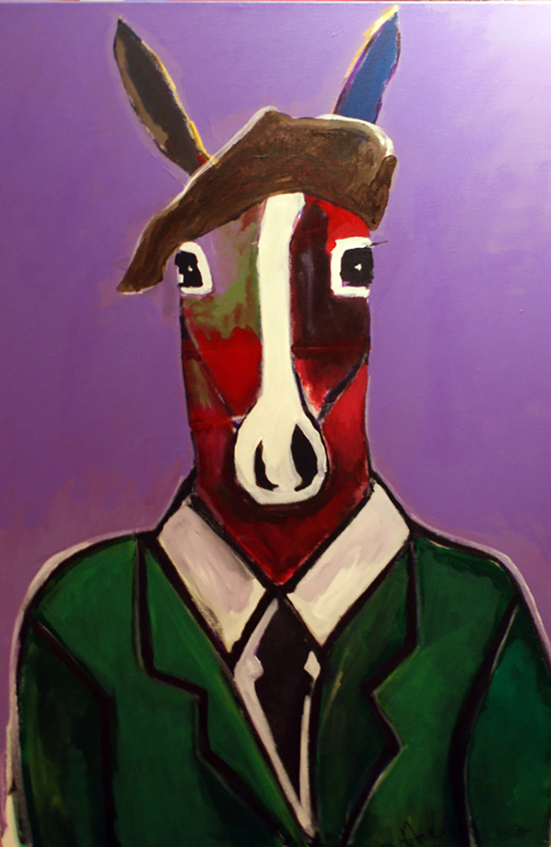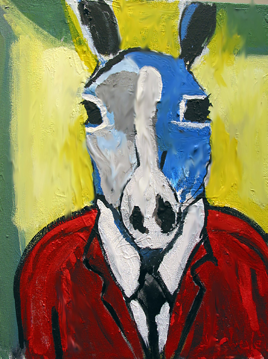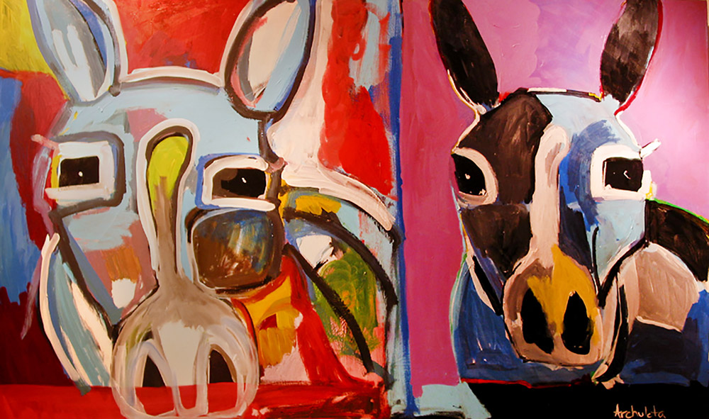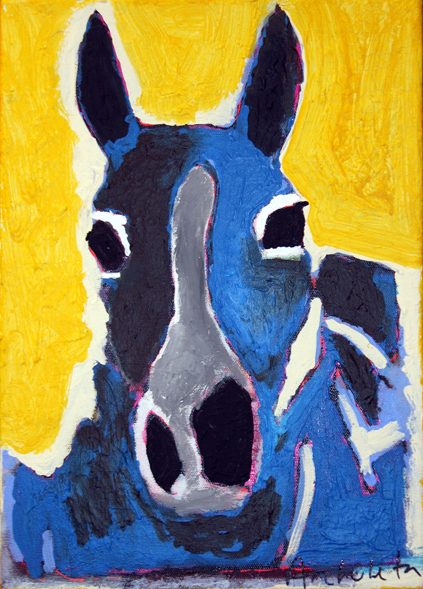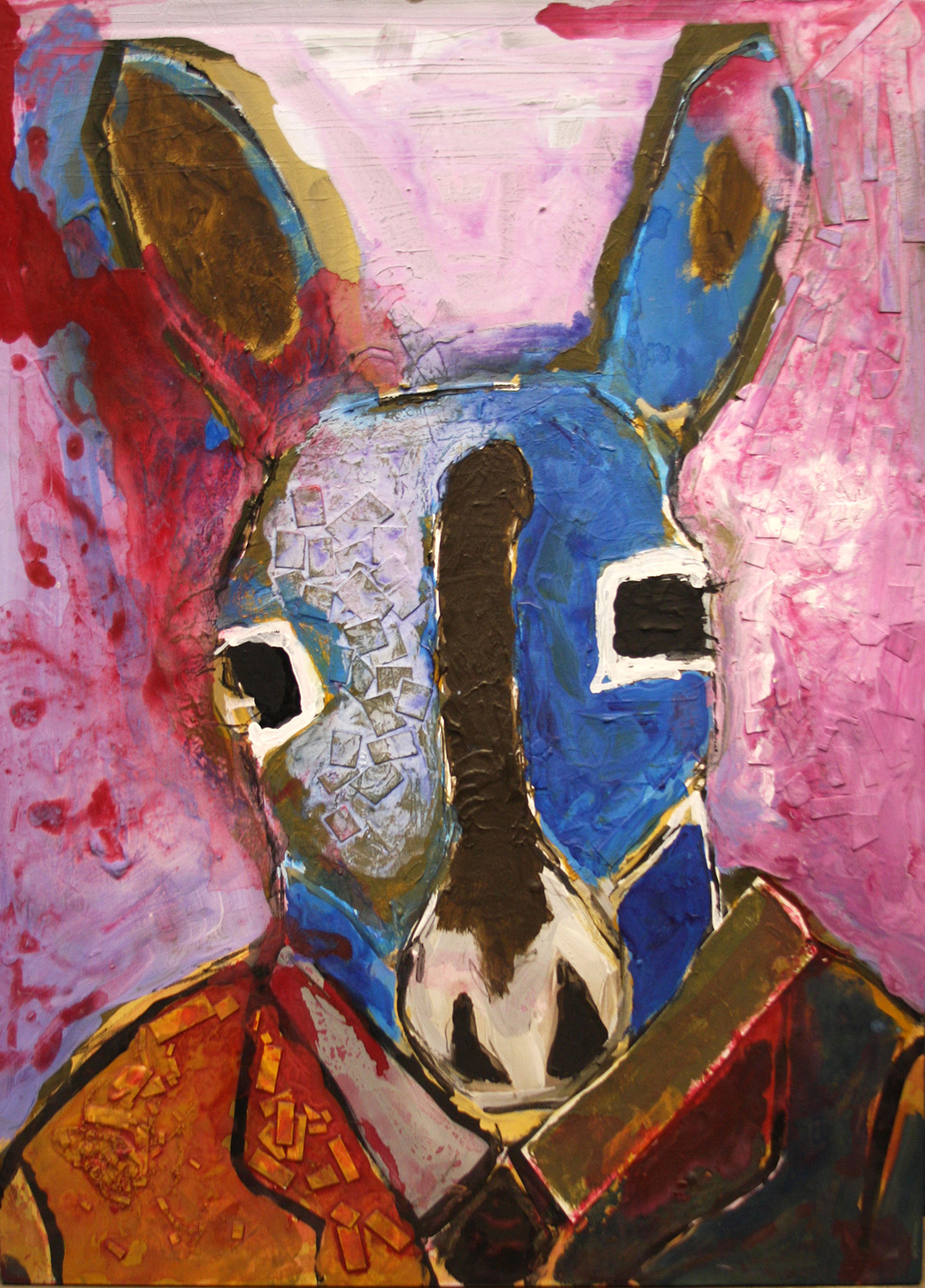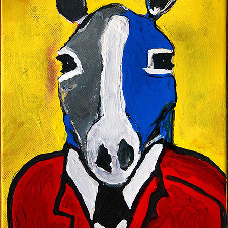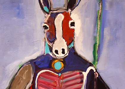 Michael was born in Embudo, New Mexico on March 25, 1969. He earned a Bachelors degree with an emphasis in art and business at the University of New Mexico in 1997. Michael has never had any formal training in art other than through his course of study while attending University. Michael began painting seriously in the spring of 2005. The creation of a character called “Blue Donkey,” and the idea of having him in every home looking after the daughter that he hasn’t seen in 3 years. Through this “Blue Donkey,” an idea for a children’s book has developed. Michael is driven by an inner anguish and an incredible amount of energy. In his first year of selling art, he sold over 200 paintings.