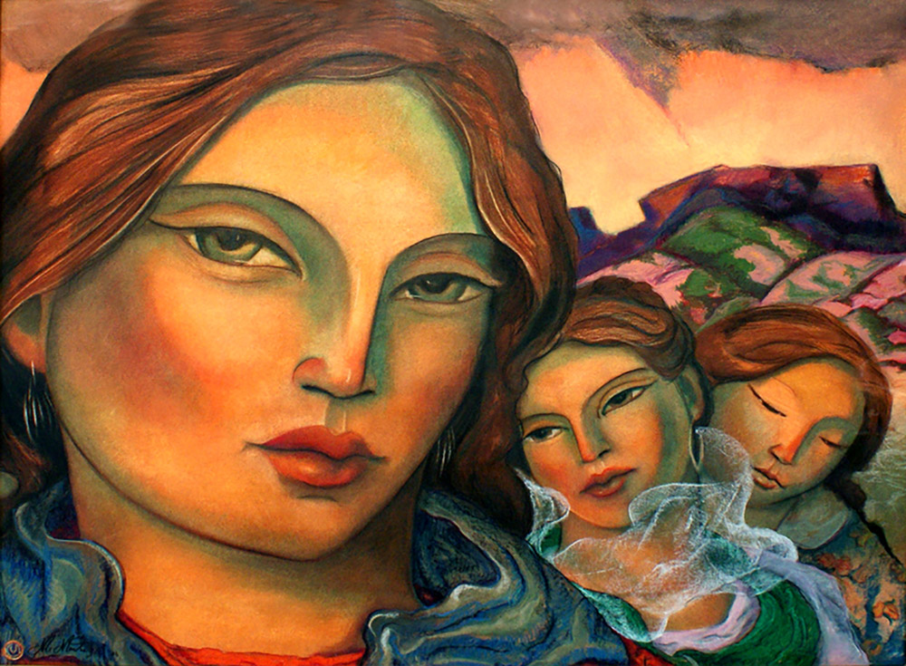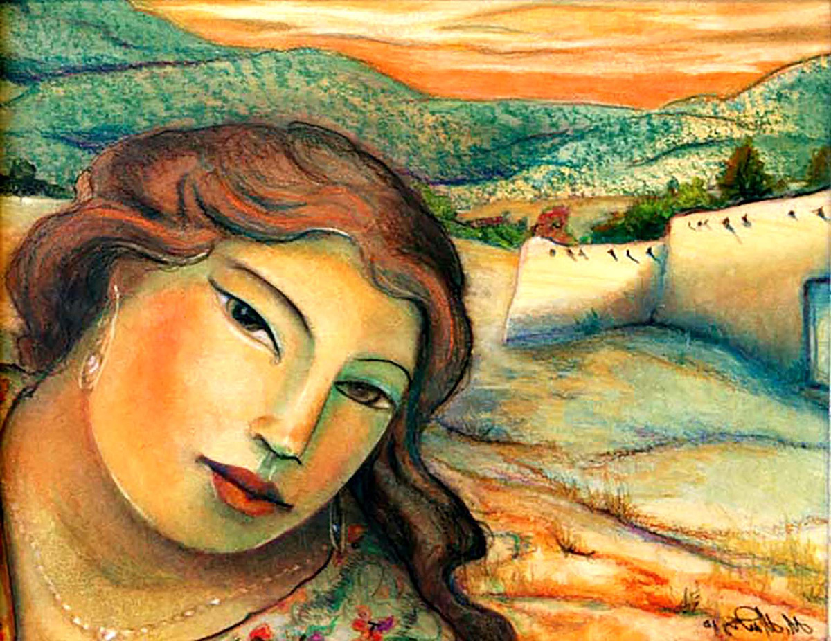 The youngest son of Hispanic parents, Miguel Martinez was born and has lived in Taos, New Mexico since 1951. He discovered his interest in the arts during high school where he enjoyed his hands-on experience with paints, clay and other media. Later, after becoming a successful jewelry designer, he turned to painting, which he believed would more fully express what he wanted to say in his art. He committed himself completely to a study of this discipline, spending five years working with several prominent New Mexico Artists including RC Gorman, Ray Vinella, and Frank Howell. Also, early on he was inspired by Mexican artists Rivera and Zuniga for their portrayal of the dignity of common folk, and he admired Modigliani’s works of powerful and poignant human emotions. He knew these were the kinds of messages stirring in his soul and waiting to be painted.