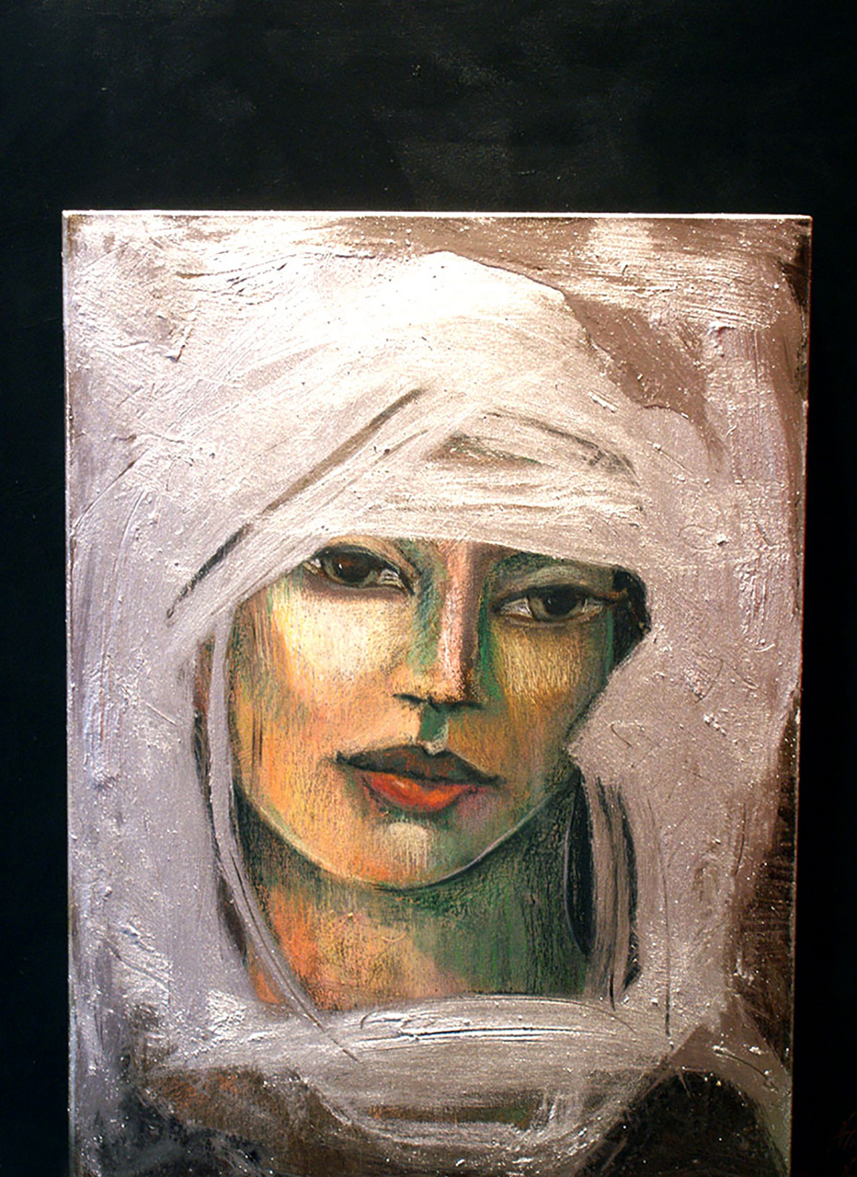 After almost twenty years this series continues, though Miguel says, “The women have changed as time passed, and I have changed as well. In my travels around the world, the women I have encountered have all found their way into my paintings. Each face I paint, to me, has a different identity. But I feel from the beginning they have all shared a common bond—their values, their character—things almost forgotten in our everyday day routines. These women are upright, strong yet gentle, proud of who they are. They have nothing to hide.”