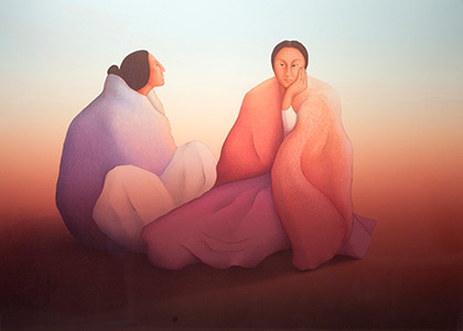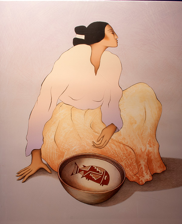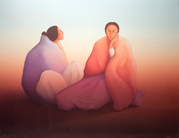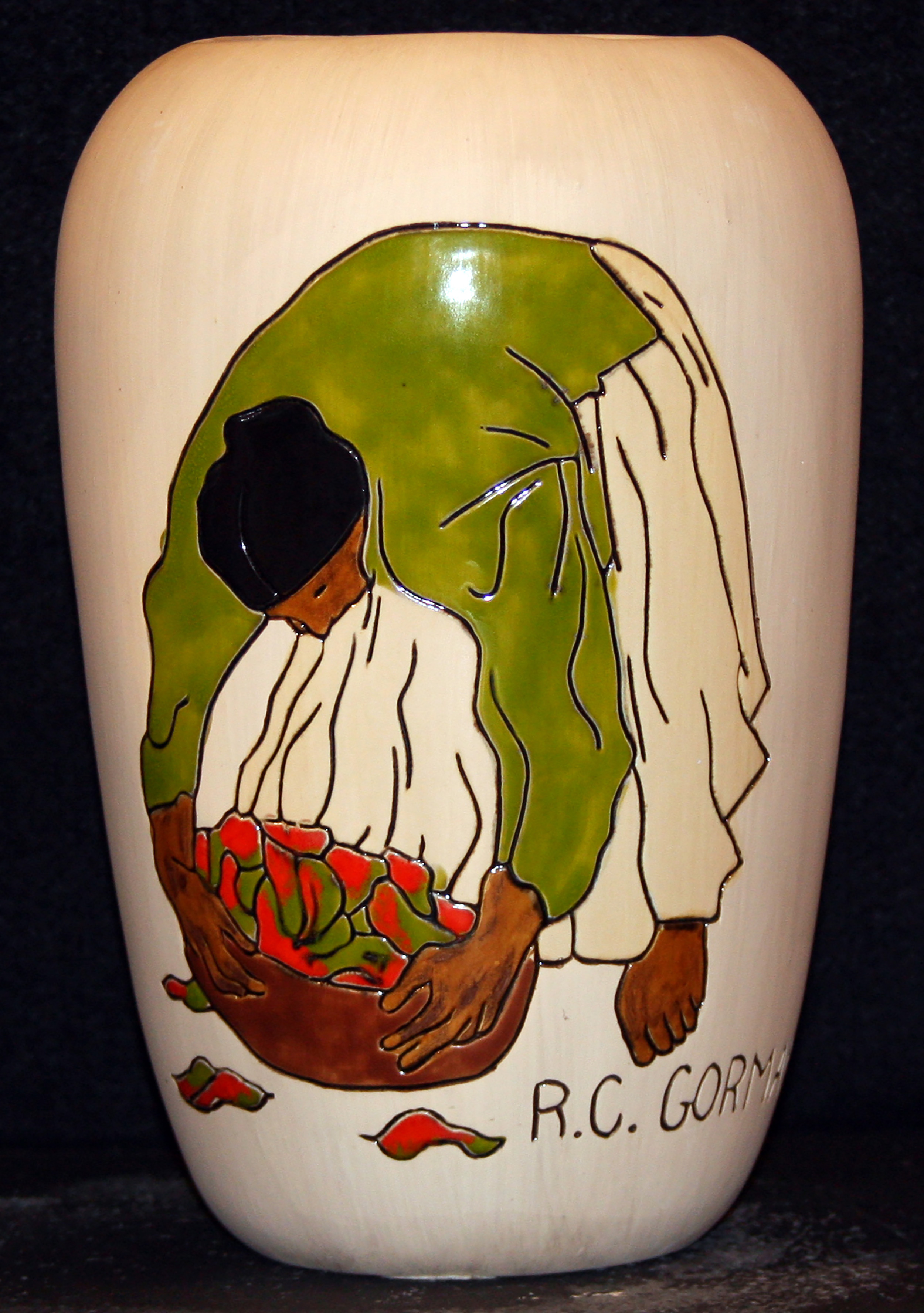Rudolph Carl Gorman (July 26, 1931- November 3, 2005) was a Native American Artist of the Navajo Nation. Referred to as “the Picasso of American Indian art” by the New York Times, his painting are primarily of Native American women and characterized by fluid forms and vibrant colors, though he also worked in sculpture, ceramics, and stone lithography. He was also an avid lover of cuisine, authoring four cookbooks, (with accompanying drawings) called Nudes and Food.